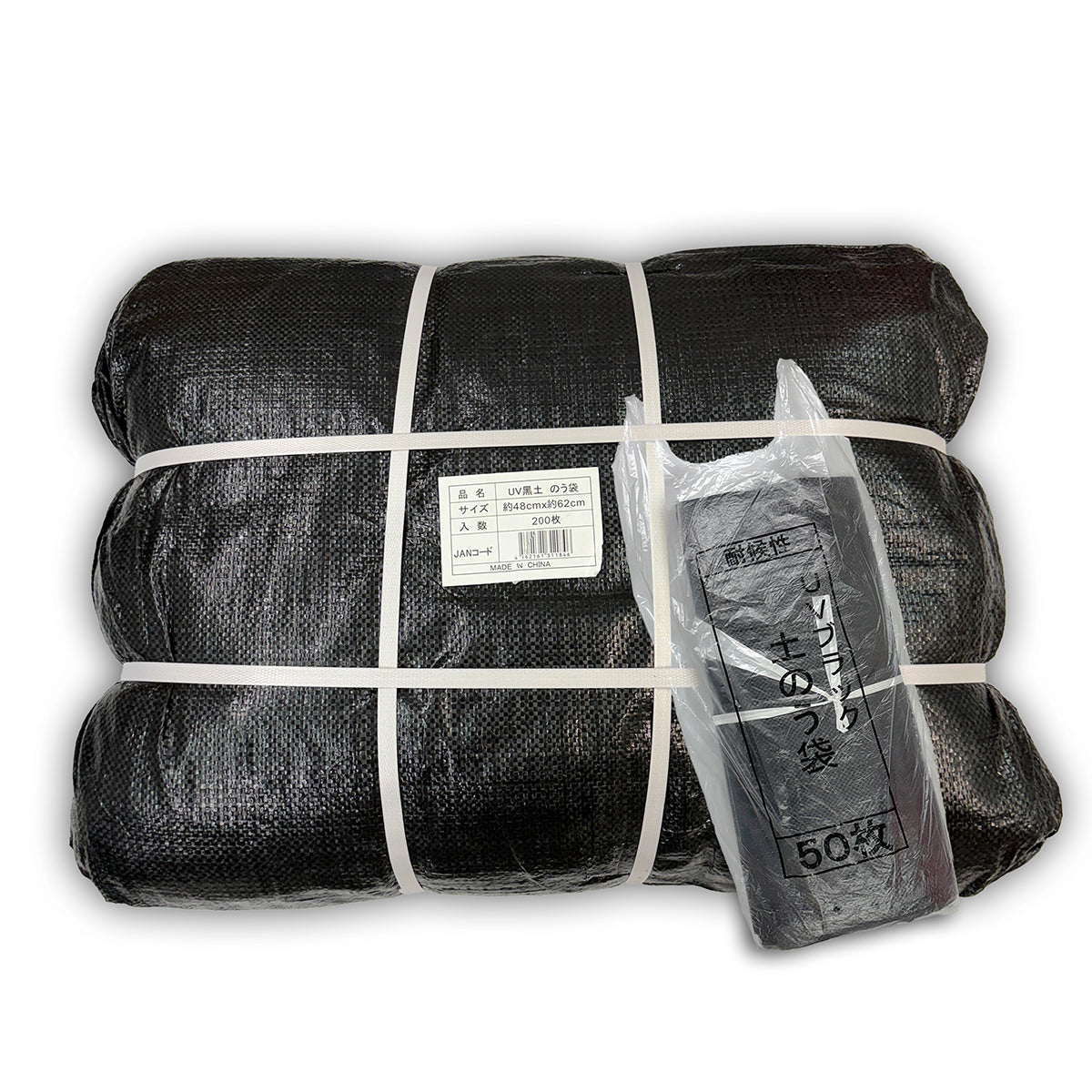 200枚入 土のう袋 黒 3年耐候性 UVどのう ひも付 60cm×48cm 産業廃棄袋 ゴミ袋 土入れ袋 土嚢 土のう